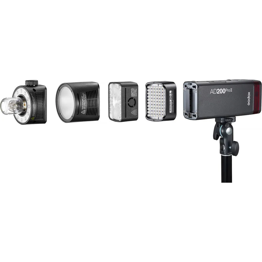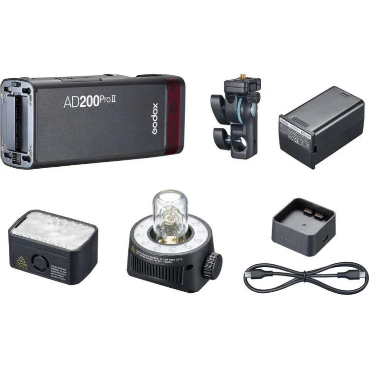 System AD200 jest jednym z najbardziej wszechstronnych systemów lamp błyskowych na rynku. W zestawie znajdują się głowice H200II i H200J II, ale dostępne osobno są także H200R, R200, S-200 i AD-L. Uchwyt Godox S2 (brak w zestawie) umożliwia korzystanie ze wszystkich akcesoriów z mocowaniem Bowens, zwiększając możliwości twórcze. Do urządzenia dostępne są także torby, uchwyty i wiele innych akcesoriów. Lampa AD200Pro II jest wyposażona w port zasilania, który umożliwa zasilanie akumulatorem PB960, zapewniając dłuższy czas pracy i szybsze ładowanie.