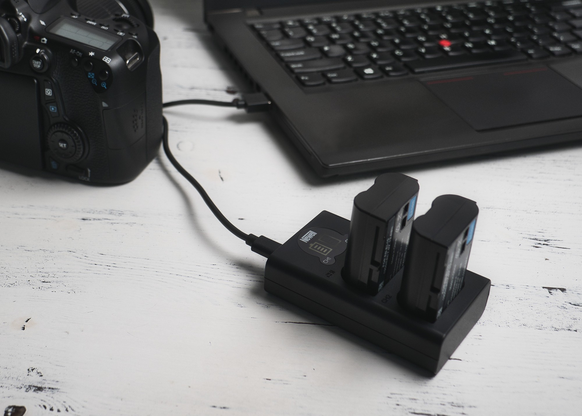 Newell DL-USB-C to niewielkich rozmiarów, profesjonalna ładowarka zasilana z gniazda USB, wyposażona w dwa kanały ładowania oraz wyświetlacz.