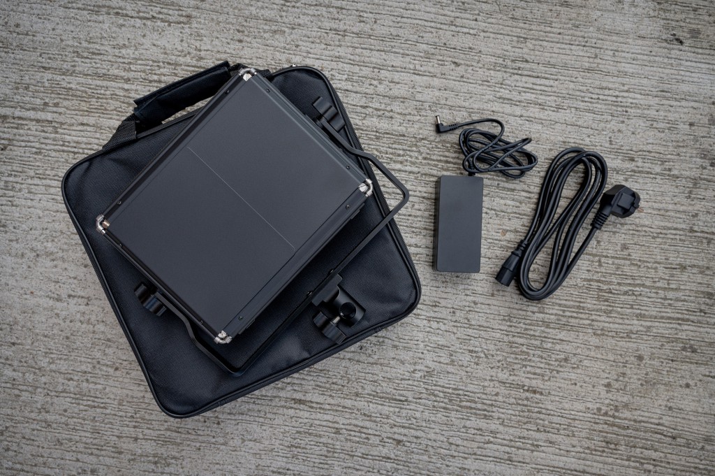 Wygodny transport oraz bezpieczne przechowywanie lampy umożliwia praktyczna, podróżna walizka zapinana na suwak. Pomieści ona lampę razem z dyfuzorem i wrotami, a także dołączony do zestawu zasilacz. W wewnętrznej kieszeni wykończonej elastyczną taśmą będziesz mógł/mogła schować dodatkowe akcesoria fotograficzne lub filmow