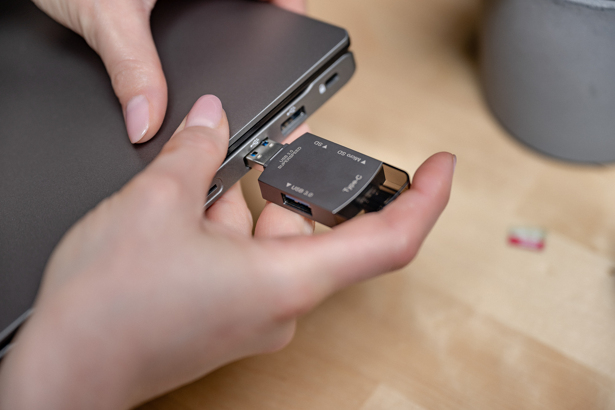 Hub Newell OTG 3 w 1 jest kompatybilny nie tylko z kartami pamięci SD oraz micro SD. Na obudowie urządzenia znajdziesz również gniazdo USB 3.0. Szybko i wygodnie podłączysz do niego pendrive lub dysk zewnętrzny, gdy wszystkie porty w komputerze będą już zajęte.