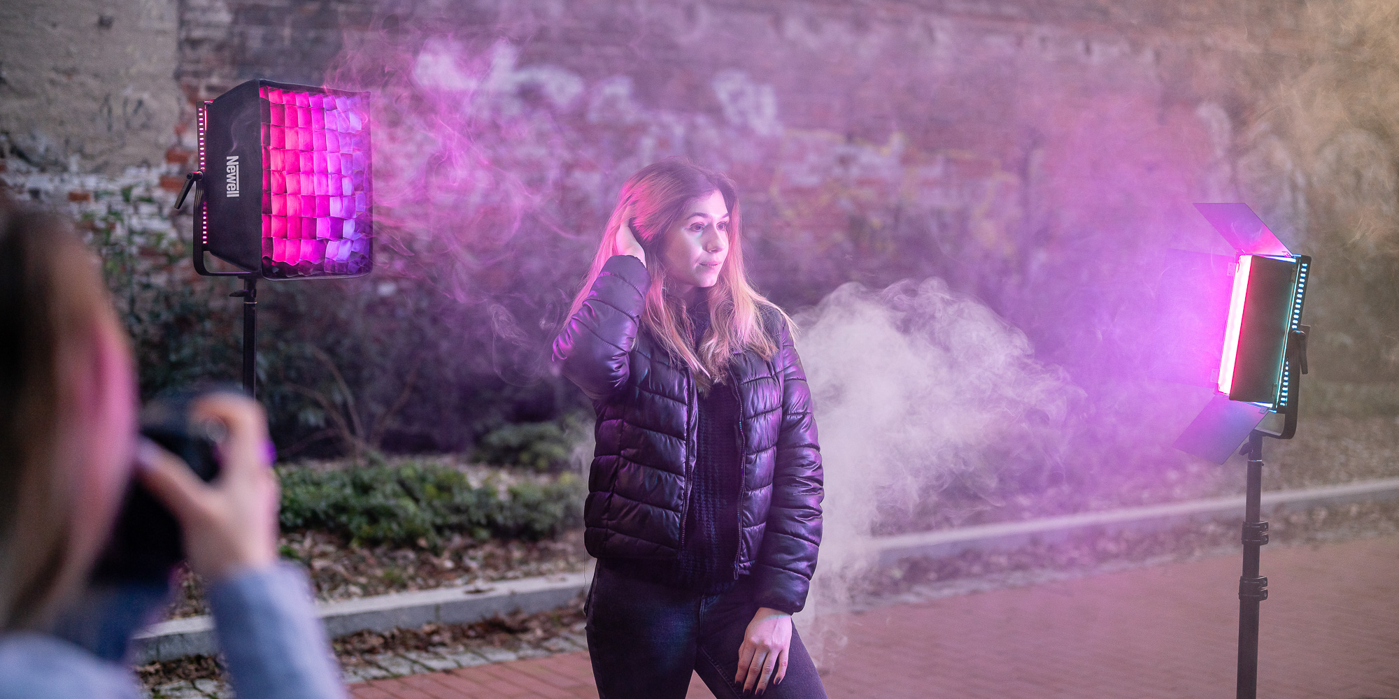 Newell RGB Vividha Effect to kwadratowy panel LED, który zapewni Ci ogromną swobodę twórczą podczas pracy ze światłem na planie filmowym lub fotograficznym. Urządzenie dysponuje kilkoma rozbudowanymi trybami pracy, które można kreatywnie wykorzystać w zależności od potrzeb Twoich projektów. Szeroki zakres regulacji temperatury barwowej, paleta barw HSI, efekty specjalne oraz unikalne przejścia kolorów "Pixel FX" to tylko niektóre z jej atutów. Przy maks. mocy na poziomie 60 W urządzenie jest w stanie emitować wiązkę światła o natężeniu 8050 luksów z odległości 0,5 m (5500 K).