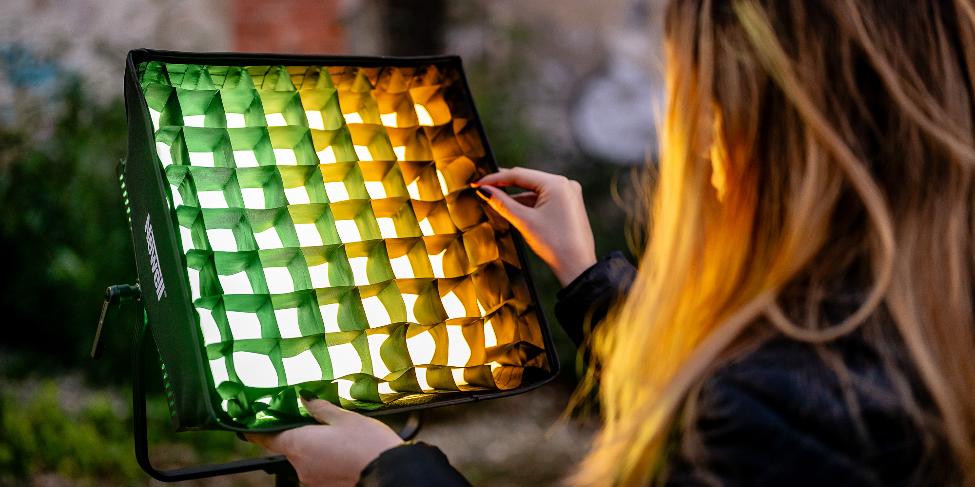 Wśród 576 diod LED tworzących panel znalazło się aż 288 diod RGB, które umożliwiają kontrolę koloru światła w obrębie przestrzeni HSI. Dzięki możliwości regulacji barwy, nasycenia oraz intensywności możesz precyzyjnie dopasować odcień wiązki do potrzeb swoich kadrów. Lampa LED Newell RGB Vividha Effect zapewnia przy tym świetne odwzorowanie kolorów i głębi tonów emitowanego światła.