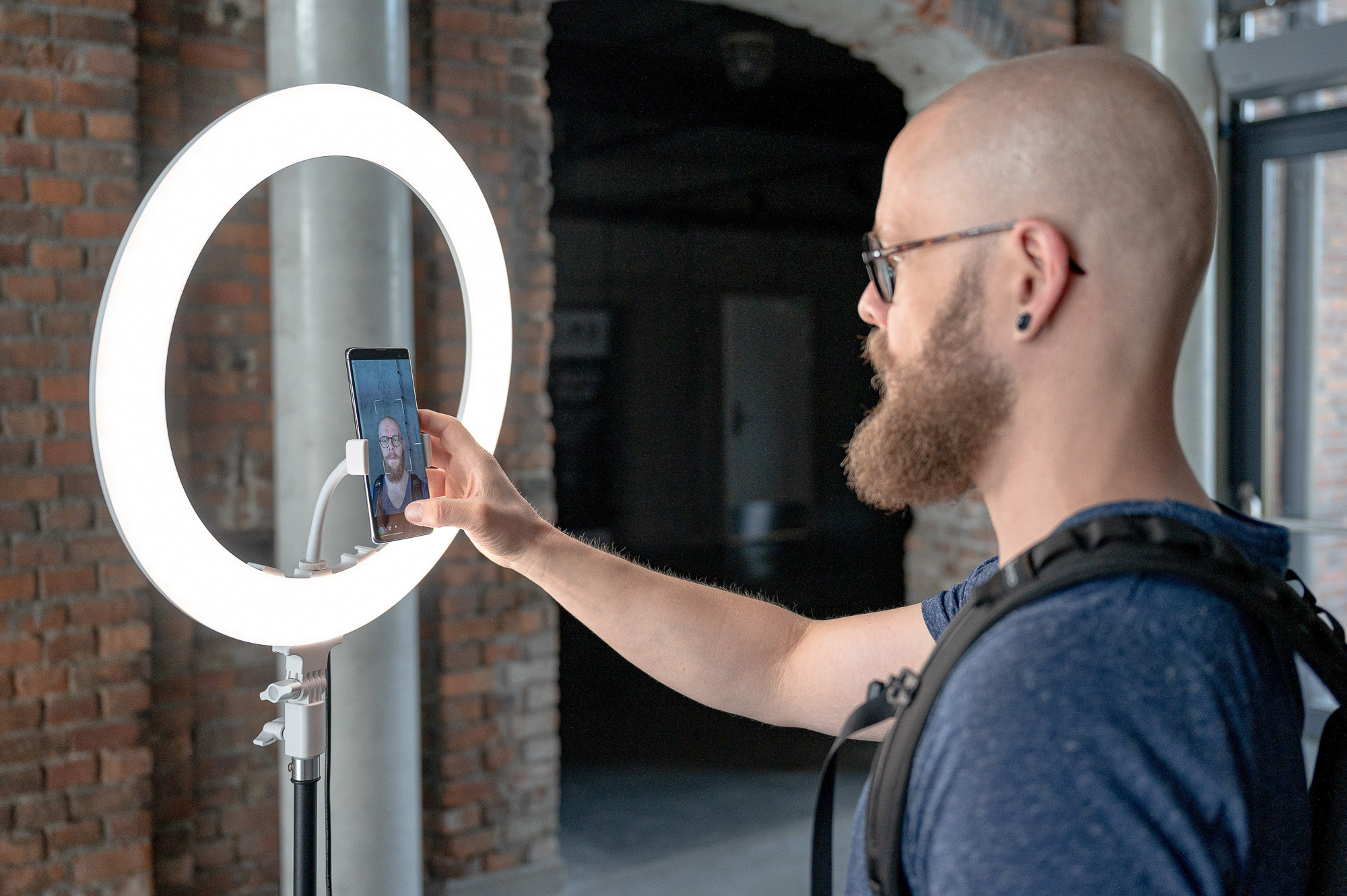Lampa pierścieniowa LED Newell RL-18A - WB (3200 K - 5500 K) - Arctic White to wszechstronne urządzenie, które znajdzie zastosowanie w fotografii portretowej, produktowej i makro. Z powodzeniem sprawdzi się również wśród vlogerów i osób tworzących filmy z myślą o serwisach Twitch, TikTok lub YouTube, uzupełniając domowe studio. Newell RL-18A rewelacyjnie odnajdzie się w pracy z makijażem i charakteryzacją, zapewniając równomierne oświetlenie twarzy. Ergonomiczna regulacja mocy i temperatury barwowej umożliwi precyzyjne dopasowanie parametrów lampy do bieżących potrzeb. Pilot zdalnego sterowania, statyw oraz uchwyt na smartfon pozwolą szybko i wygodnie zmieniać kadry, zarządzać światłem i tworzyć jeszcze lepsze zdjęcia oraz filmy!