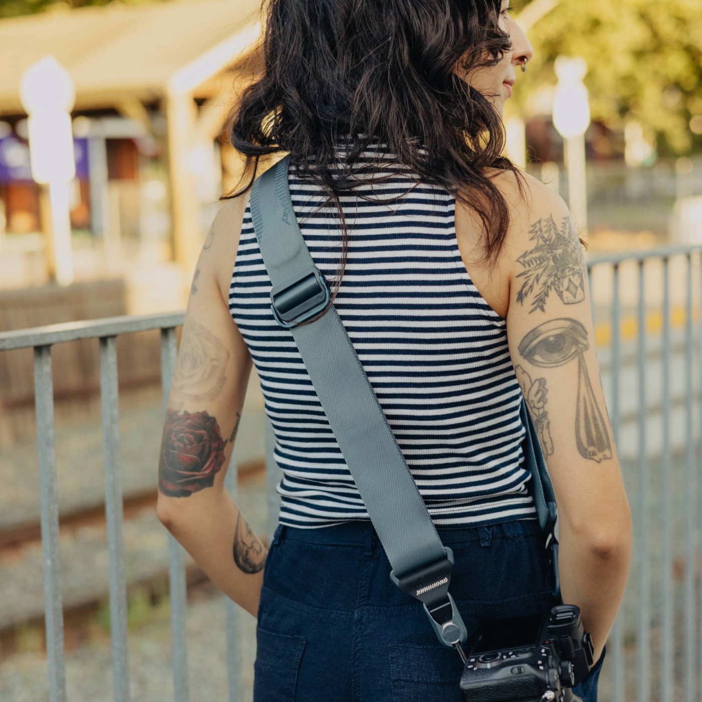Pasek SLIDE posiada dodatkowy, aluminiowy uchwyt służący do regulacji długości. Niezależnie od tego, czy chcesz zmienić  wysokość paska na szyi, czy przełożyć przez ramię, zmiana długości zajmuje dosłownie ułamek sekundy. W dodatku zrobisz to przy użyciu jednej ręki.