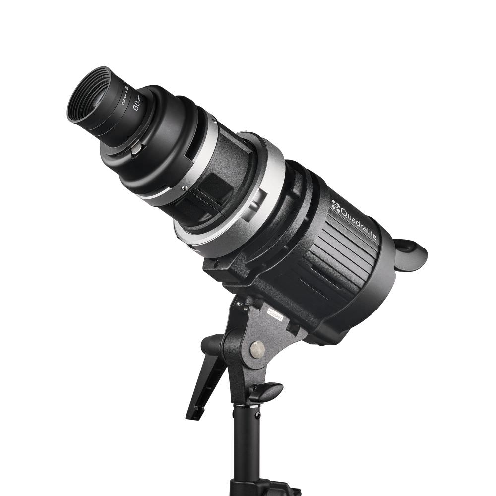 Dołączony do zestawu podstawowy obiektyw L-60 zapewnia uniwersalną wielkość stożka światła, a dzięki mocowaniu Canon EF w razie potrzeby można go wymienić na obiektyw fotograficzny o innej ogniskowej i użyć go w roli obiektywu projekcyjnego.