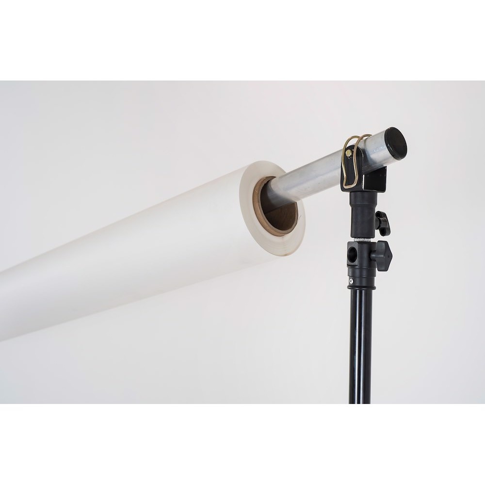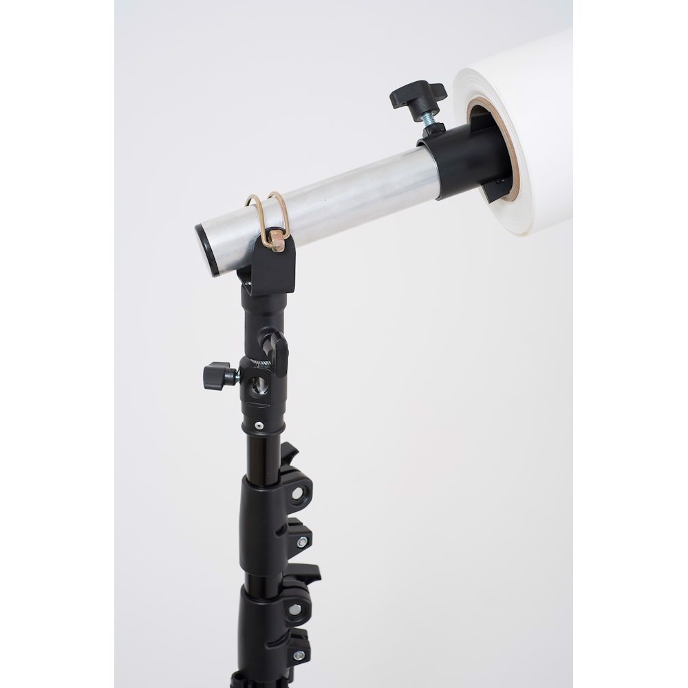 Specjalna tuleja z dwoma klinami zabezpiecza rolkę tła przed samoczynnym i niekontrolowanym rozwijaniem.