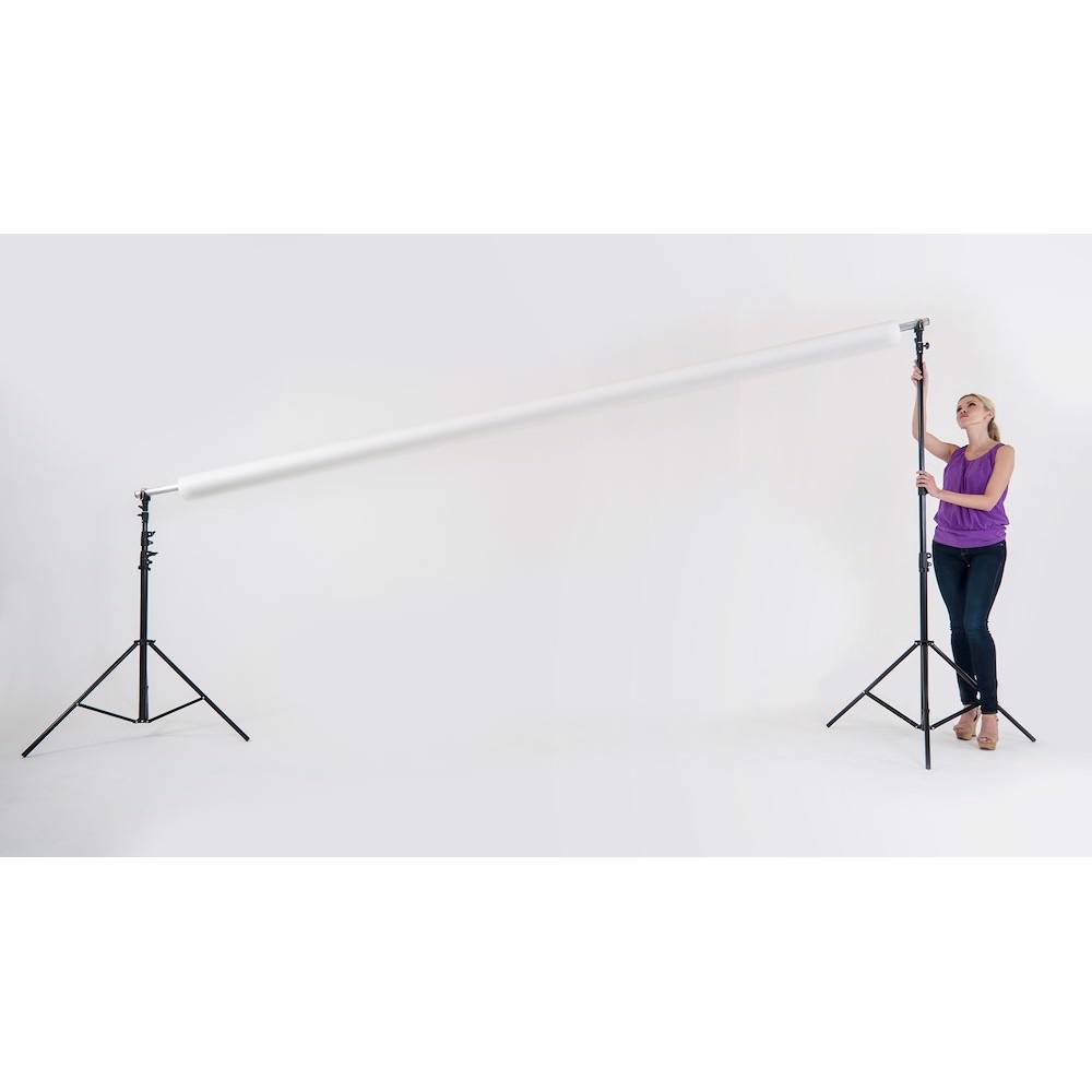 Oryginalny sposób mocowania poprzeczki na przegubach umożliwia szybkie unoszenie i rozwijanie tła przez jedną osobę.